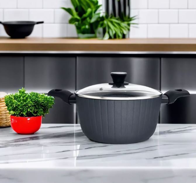 Terra - кованая линейка посуды прочная серия для ежедневной готовки с акцентом на функциональность и устойчивость к нагреву. Включает в себя классическую кастрюлю 2,5 литра - идеальный «рабочий инструмент» для семейных обедов — быстро, надёжно и незатейливо в уходе.